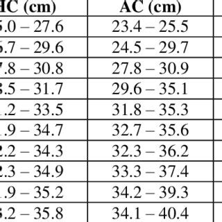• AC: Usually falls between 22 cm to 26 cm (220 to 260 mm). This measurement is more susceptible to variations depending on the baby’s weight.