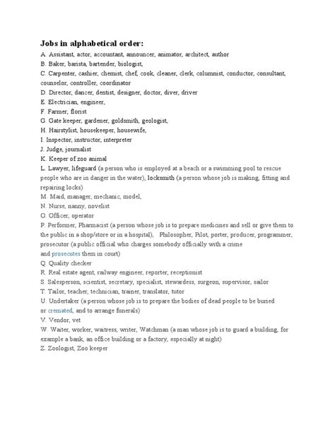 Alphabetical Job Listings: A Comprehensive Guide