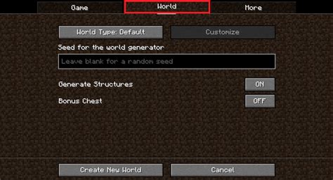 2. Go to World Options: In the world creation menu, find the “Seed” option.