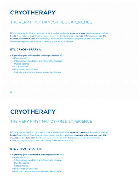 Alright, let’s break down the awesome benefits you can get from using a BTL Cryotherapy machine . Trust me, there’s a lot to love! First off, pain reduction is a big one. If you’re dealing with chronic pain from conditions like arthritis or fibromyalgia, cryotherapy can be a game-changer. The extreme cold helps to numb nerve endings, providing temporary relief and making it easier to manage your pain. Plus, the reduced inflammation can also contribute to long-term pain reduction.