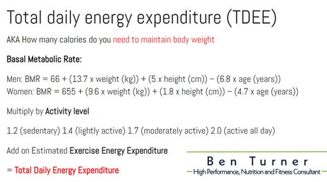 Alright, let’s get down to the nitty-gritty. Here are a couple of formulas you can use to estimate your daily energy expenditure. Keep in mind that these are just estimates, and individual results may vary. There are several formulas available for calculating daily energy expenditure, each with its own strengths and weaknesses. However, two of the most commonly used and widely accepted formulas are the Harris-Benedict equation and the Mifflin-St Jeor equation. Both of these equations take into account factors such as age, sex, weight, and height to estimate your basal metabolic rate (BMR), which is the amount of energy your body needs at rest. Once you have calculated your BMR, you can then multiply it by an activity factor to estimate your total daily energy expenditure (TDEE). The Harris-Benedict equation was developed in the early 20th century and has been used for many years as a standard method for calculating BMR. However, some studies have suggested that it may overestimate BMR in certain populations, particularly those who are overweight or obese. The Mifflin-St Jeor equation, on the other hand, is a more recent formula that has been shown to be more accurate than the Harris-Benedict equation in a variety of populations. It takes into account the same factors as the Harris-Benedict equation but uses a different set of coefficients that have been found to be more reliable. Ultimately, the best formula to use for calculating your daily energy expenditure will depend on your individual circumstances and preferences. However, the Mifflin-St Jeor equation is generally considered to be a more accurate and reliable option, particularly for those who are overweight or obese. Therefore, it is often recommended as the preferred method for estimating BMR and TDEE.