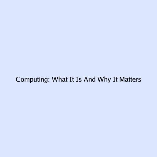 Computing: What It Is And Why It Matters