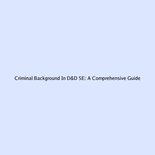 Criminal Background In D&D 5E: A Comprehensive Guide