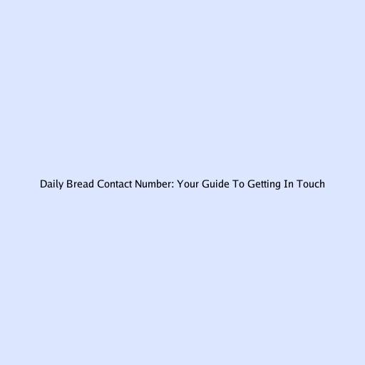 Daily Bread Contact Number: Your Ultimate Guide