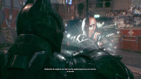 Moreover, Deathstroke’s interactions with other characters in Arkham Knight add layers to his personality. His exchanges with Batman are particularly noteworthy, filled with tension and mutual respect, albeit grudgingly given. These moments of dialogue reveal the complex relationship between the two characters, highlighting their similarities and differences. Deathstroke sees Batman as a worthy adversary, someone who challenges him both physically and mentally. This acknowledgment adds depth to Deathstroke’s motivations, suggesting that he isn’t just motivated by money or power but also by the thrill of facing a true challenge. His lines reflect this duality, often mixing taunts with subtle admiration. By examining these interactions, players gain a greater appreciation for the nuanced characterization of Deathstroke in Arkham Knight , cementing his status as a memorable and compelling antagonist.