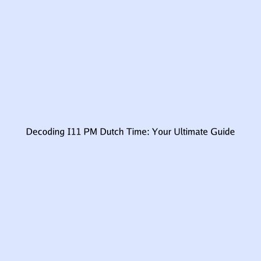 Decoding I11 PM Dutch Time: Your Ultimate Guide