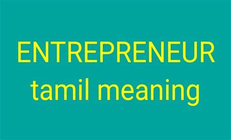 Entrepreneur Meaning In Tamil: Your Guide