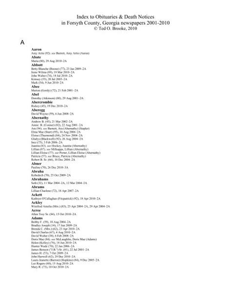 Ultimately, the core purpose of Forsyth County obituaries is remembrance and honor. Each notice is a testament to a life that was lived, a person who touched others, and a presence that will be missed within the community. The Forsyth County News sees it as a profound privilege to provide a platform where these lives can be celebrated and memorialized. It’s not just about reporting a death; it’s about acknowledging the impact an individual had on their family, friends, and the broader Forsyth County landscape.