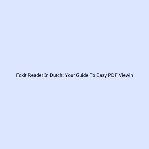 Foxit Reader In Dutch: Your Guide To Easy PDF Viewing