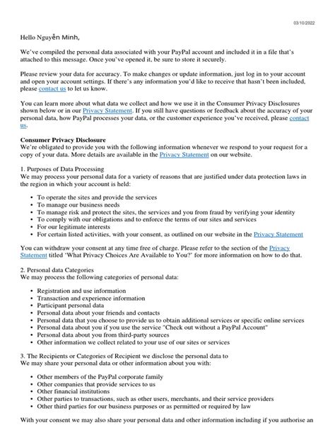 Step 4: Specify Data Type (If Applicable) and Confirm. Depending on PayPal’s current interface, you might be asked to select specific categories of data you wish to receive, or it might be a single, all-encompassing request. If you have choices, think about what’s most relevant to your needs. For instance, if you only need transaction history for tax purposes, you might be able to select just that. However, for a full privacy audit or a complete picture, opting for all available personal data is recommended. After making your selection, you’ll likely need to confirm your request. This might involve re-entering your password for an additional layer of security, as PayPal wants to ensure that only you are making this request for sensitive information.
