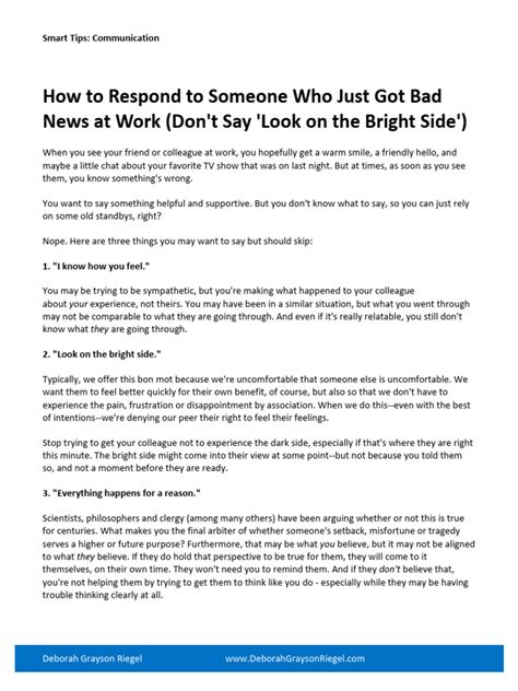 When you hear bad news , your immediate reaction can set the tone for the entire interaction. First things first, guys, take a breath. It’s natural to feel a rush of emotions—shock, sadness, even anger—but try to channel that into a calm, reassuring demeanor for the person speaking. The absolute most crucial initial step is to listen actively . And when I say actively, I mean really, truly listen. Put down your phone, make eye contact if culturally appropriate, and give them your undivided attention. Don’t interrupt. Don’t formulate your response while they’re still speaking. Just absorb their words, their tone, and their body language. They need to feel heard, not rushed. Often, the very act of sharing the burden is therapeutic in itself. Once they’ve finished, acknowledge what they’ve said. This isn’t about giving advice or finding solutions; it’s about confirming you’ve heard them. You might say something simple like, “ Thank you for trusting me with this ”, or “ I hear you, and this sounds incredibly difficult .” These phrases validate their courage in sharing and confirm your presence. Avoid minimizing their pain with phrases like “ It could be worse ” or “ Everything happens for a reason .” Seriously, guys, just don’t. These well-meaning but ultimately unhelpful clichés can make people feel misunderstood and even alienated. Instead, focus on expressing your sympathy . Simple, heartfelt statements are usually the best. “ I’m so sorry to hear that ” is a classic for a reason. You can follow it with, “ My heart goes out to you ” or “ I can’t imagine how tough this must be .” These expressions of empathy show that you’re connecting with their feelings, even if you don’t fully understand the depth of their pain, which, let’s be honest, you probably can’t. The goal here is to create a safe space for their emotions, whatever they may be. Allow them to cry, to be silent, to be angry. Don’t feel the need to fill every silence with words. Sometimes, a shared moment of quiet understanding is the most powerful form of support . Remember, you’re not there to fix it; you’re there to bear witness to their struggle and offer your unwavering comfort . Your presence, your quiet strength, and your genuine compassion are the most valuable assets you can bring to the table in these initial, raw moments.