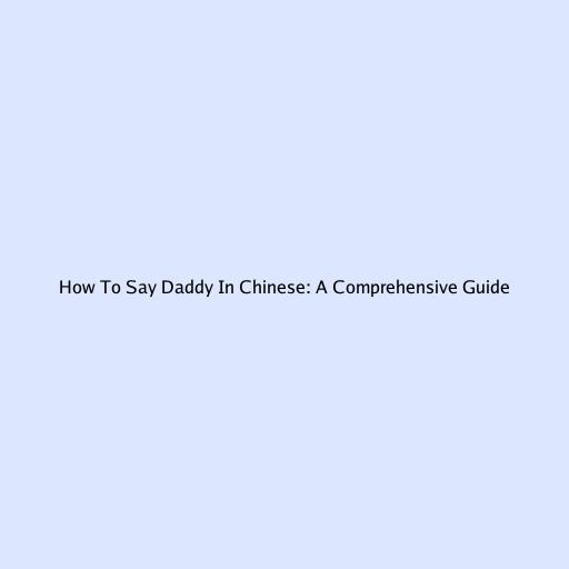 How to Say Daddy in Chinese: A Comprehensive Guide