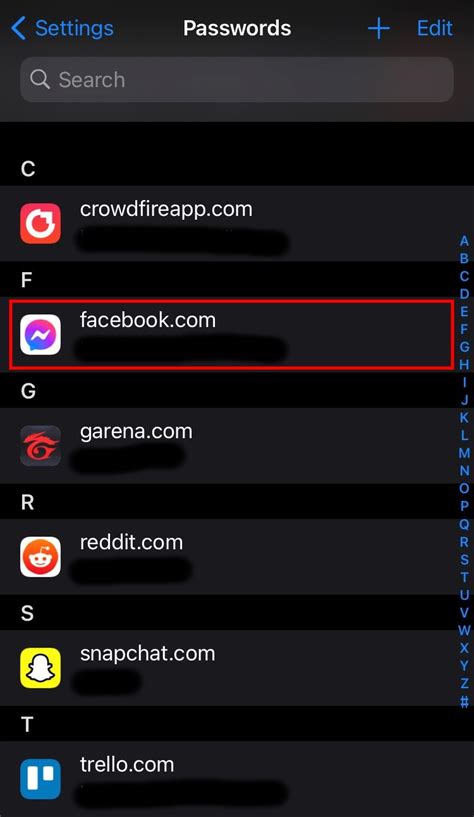 4. Look for “facebook.com” in the list of saved passwords. If you find it, click on the eye icon next to the password to reveal it.