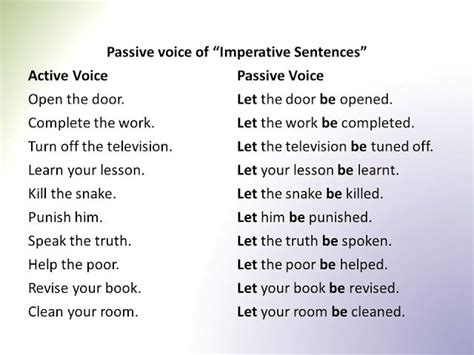 Like anything, mastering the art of converting imperative sentences to passive voice takes practice. Try converting different types of imperative sentences and see how the rule applies. The more you practice, the more natural it will become.