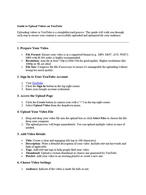 Before we even think about hitting that upload button, let's make sure you're all set up. First things first, you need a Google Account . If you have Gmail, Google Drive, or any other Google service, you already have one! If not, creating a Google Account is super easy and totally free. Once you have that, you can create your very own YouTube channel. Think of your channel as your personal corner of YouTube where all your videos will live. It's where your subscribers will find you, and it's where you can start building your brand or community. To create a channel, head over to YouTube, click on your profile icon in the top right corner, and select 'Create a channel.' Follow the prompts, give your channel a cool name, and you're good to go! Now, about that video you want to upload: make sure it's in a common video format like MP4, MOV, or AVI. YouTube accepts most popular formats, but MP4 with H.264 is generally recommended for the best quality and compatibility. Also, consider the length and resolution. While YouTube allows longer videos, ensure your content is engaging throughout. For a professional look, aim for at least 1080p resolution if possible. A well-optimized video file means a smoother upload process and a better viewing experience for your audience. Remember, the quality of your upload starts with the quality of your video file itself. So, take a moment to review your video, check its clarity, audio, and overall appeal before you hit that upload button. This initial preparation is key to making a great first impression on YouTube and ensuring your viewers have the best possible experience.
