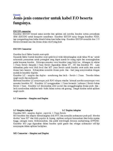 Jenis-Jenis Konektor Fiber Optik