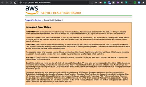 Hey everyone, let’s dive into something crucial for anyone using AWS: Kinesis Outages . We’re going to break down what these are, why they happen, and most importantly, what you can do to protect your stuff. Understanding AWS Kinesis outages is super important because it directly impacts your real-time data streaming and processing pipelines. Think about it – if your data stream goes down, so does whatever relies on that data. This could be anything from website analytics to financial transactions, and even critical monitoring systems. The core goal here is to give you a clear picture of potential issues and arm you with the knowledge to either prevent problems or handle them like a pro when they arise. We’ll explore the underlying causes of Amazon Kinesis outages , covering everything from network hiccups and service disruptions to regional failures. We will then discuss how these outages can affect your applications, looking at both the immediate consequences and the longer-term implications for data integrity and business operations. Finally, and most critically, we’ll delve into proactive strategies you can employ to minimize the impact of Kinesis downtime. This includes implementing robust monitoring systems, designing resilient architectures, and leveraging AWS’s best practices for high availability. So, let’s get started and make sure you’re well-prepared for anything that comes your way.
