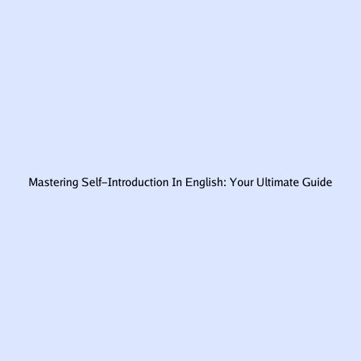 Mastering Self-Introduction in English: Your Ultimate Guide