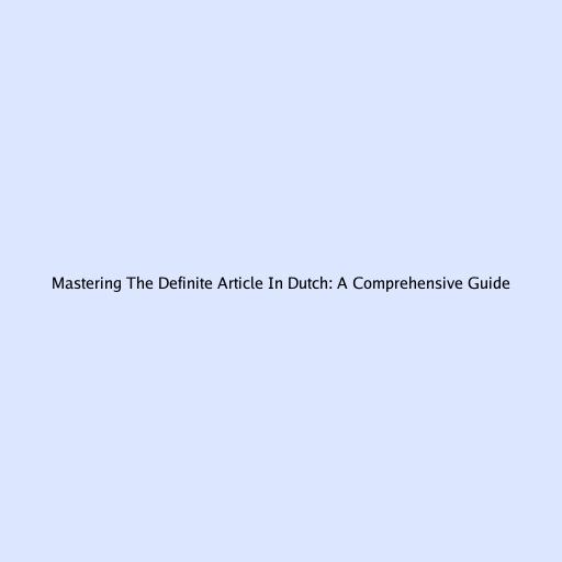 Mastering the Definite Article in Dutch: A Comprehensive Guide