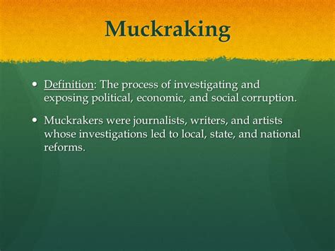 Hey guys! Ever heard of muckraking ? It’s not about gardening, I promise! Muckraking is a form of investigative journalism that emerged during the Progressive Era in the United States (roughly from the 1890s to the 1920s). These journalists fearlessly exposed corruption, scandals, and social injustices lurking within businesses and politics. Think of them as the original watchdogs, digging deep to uncover the dirt and bring it to light for the public to see. The term itself was coined by President Theodore Roosevelt, who, while acknowledging the value of their work, also cautioned against sensationalism and excessive focus on the negative. He compared them to the character in John Bunyan’s Pilgrim’s Progress who was too busy raking up muck to notice the good around him. Despite Roosevelt’s mixed feelings, the muckrakers played a crucial role in sparking significant social and political reforms during a pivotal time in American history. They helped to raise public awareness about pressing issues, galvanize public opinion, and ultimately push for changes that improved the lives of many. This type of journalism isn’t just a thing of the past; it continues to influence investigative reporting today, reminding us of the importance of holding power accountable and striving for a more just society. Without muckrakers, many wrongdoings would remain hidden, and the powerful would be free to act without consequence. It’s a testament to the power of the press and its ability to shape public discourse and drive meaningful change.
