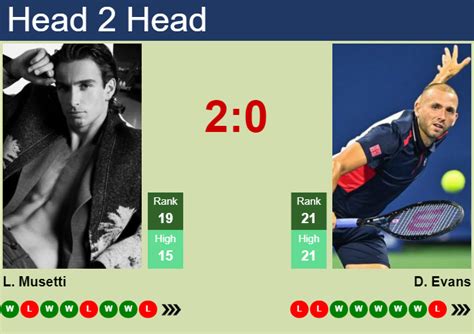 When analyzing a match, it’s crucial to examine the head-to-head record between the players. This gives us a clear picture of their past encounters. It is important to look at the historical data. This historical data includes past match results, and any relevant details. Musetti and Evans have faced each other before, and the previous results provide valuable insights into their matchup dynamics.