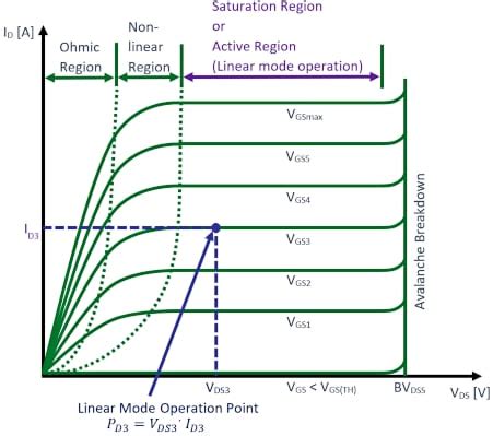 - Cut-off Region (Vgs < Vth): When the gate-source voltage (Vgs) is less than the threshold voltage (Vth), the MOSFET is in the cut-off region. No channel is formed, and no current flows between the source and drain. It’s like the switch is completely off.