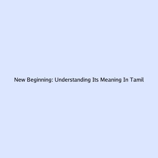 New Beginning: Understanding Its Meaning In Tamil