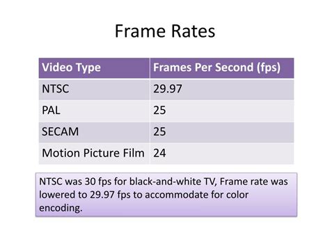 Alright, let’s get down to the nitty-gritty of the NTSC frame rate and what it means for us here in the USA. The National Television System Committee (NTSC) standard, which dictated analog television broadcasting in the US for decades, operates at a specific frame rate. This rate is 29.97 frames per second (fps) . Now, why 29.97 and not a clean 30 fps? This is where history and technology intertwine in a really cool way. Back in the day, when color television was being developed, engineers had to integrate the color signal into the existing black-and-white broadcast system without disrupting what people were already watching. They found that by slightly reducing the frame rate from the original 30 fps to 29.97 fps , they could minimize interference between the audio and video signals, particularly the color information. This technique, called color subcarrier or chrominance subcarrier , was a clever workaround to make color TV compatible with existing black-and-white sets. So, that tiny fraction of a drop in frames per second was a huge deal for enabling color broadcasting. It’s like they found a secret handshake for the signals to play nicely together. This means that technically, every time you watch a show broadcast in the NTSC standard, you’re seeing 29.97 unique images per second, not a round 30.