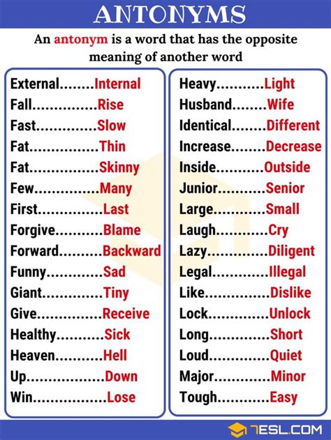 Learning antonyms is a fantastic way to expand your vocabulary. When you learn a new word, try to learn its opposite as well. This will give you a more complete understanding of the word and its nuances. Plus, you’ll have two words in your arsenal instead of just one! This is super useful for improving your writing and speaking skills, making you sound more articulate and knowledgeable. Think of it as a two-for-one deal in the language learning world!