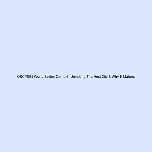 OSCPSEI World Series Game 6: Unveiling The Host City & Why It Matters