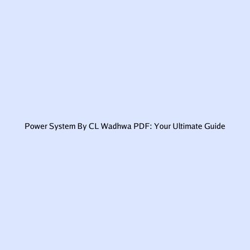 Power System by CL Wadhwa PDF: Your Ultimate Guide