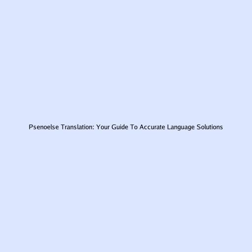 Psenoelse Translation: Your Guide to Accurate Language Solutions