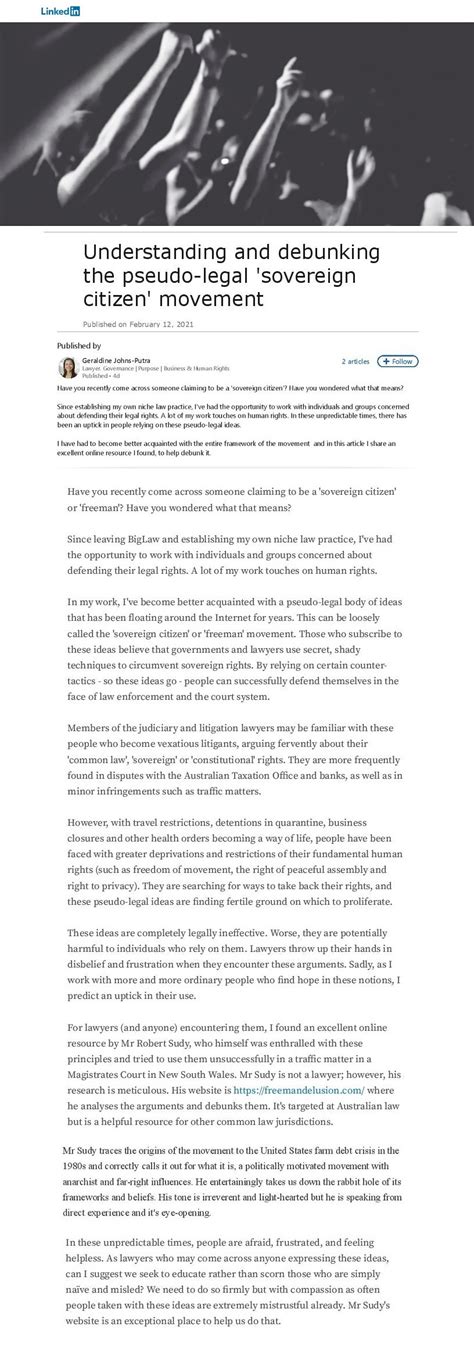 Ah, the Sovereign Citizen movement . This is a goldmine for pseudo-legal arguments . At its core, the sovereign citizen ideology posits that individuals are sovereign beings, separate from and superior to government authority. They believe they can essentially opt out of laws and regulations by declaring themselves ‘sovereign.’ This often involves elaborate, made-up legal filings, like liens against government officials or declaring their ‘strawman’ (a legal construct representing them) dead. They might claim they are not subject to traffic laws, taxes, or court jurisdiction because they are ‘natural persons’ operating under common law, not statutory law. They often cite obscure, misinterpreted historical documents or legal theories that have no standing in modern jurisprudence. For instance, they might argue that the U.S. Constitution is a contract that they never signed, or that certain amendments were never ratified, thereby invalidating laws. They frequently use specific jargon like ‘corporation sole,’ ‘maritime law,’ or ‘admiralty law’ in ways that are completely detached from their actual legal meanings. The Sovereign Citizen movement is a prime example of how a deep-seated distrust of government can manifest in complex, internally consistent (within their own logic), but legally baseless, arguments. It’s a whole alternative legal universe that exists only in the minds of its adherents and offers no actual protection or recognition from legitimate legal systems. Their filings are almost universally rejected by courts, and their arguments are consistently debunked by legal professionals, yet the movement persists, fueled by online communities and a strong sense of shared identity.