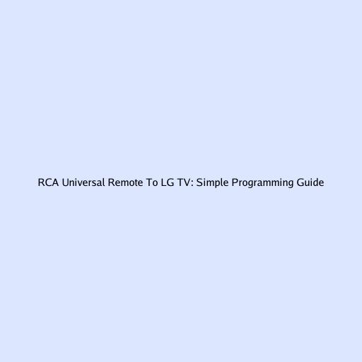 RCA Universal Remote To LG TV: Simple Programming Guide