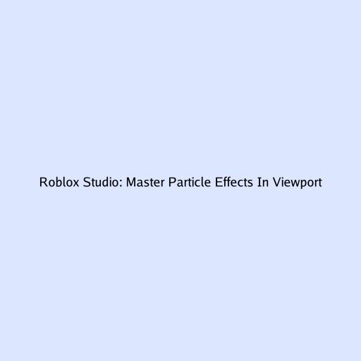 Roblox Studio: Master Particle Effects In Viewport
