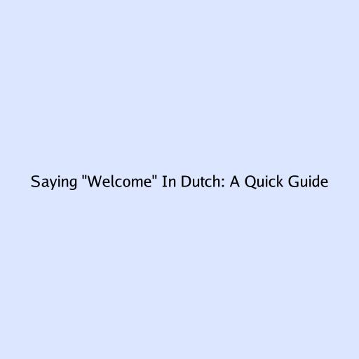 Saying “Welcome” in Dutch: A Quick Guide
