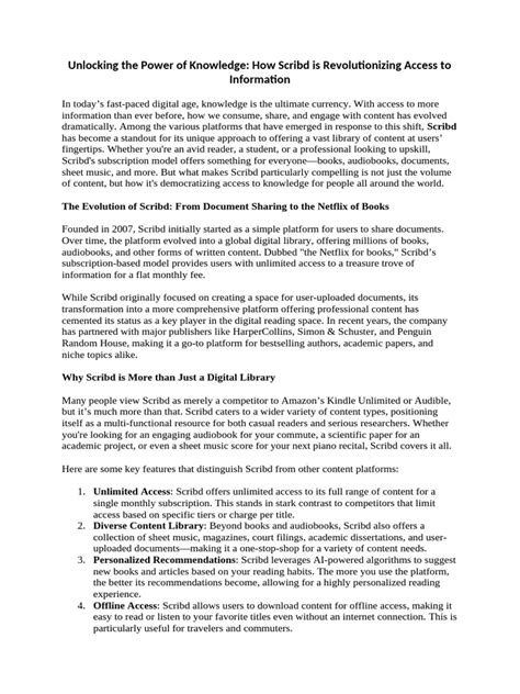 Now, while Scribd offers a good chunk of content even with a free account (usually limited access or trials), the real magic happens when you upgrade to Scribd Premium . This is where the “unlimited access” part really kicks in. With a premium subscription, you wave goodbye to those annoying limits and unlock the full potential of the library. Imagine being able to download any book or audiobook and read or listen to it without restrictions. You can binge-read that entire series you’ve been eyeing, listen to a new audiobook every day on your drive to work, or catch up on all your favorite magazines without missing an issue. Scribd Premium also often includes exclusive content and early access to certain titles. It’s about removing the barriers between you and the knowledge or entertainment you crave. For students, it means access to countless research papers and study guides. For professionals, it’s a gateway to industry reports and business books. And for the casual reader, it’s simply a passport to a world of stories and information, all at your fingertips. The convenience and sheer value proposition of Scribd Premium are undeniable for anyone who consumes a lot of digital content. It transforms the platform from a browsing experience to a deep-dive, immersive one.