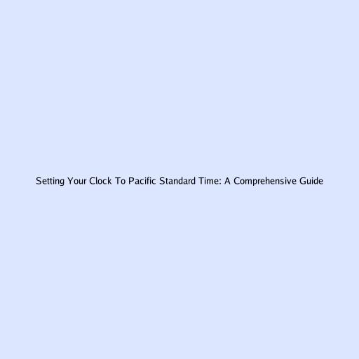 Setting Your Clock to Pacific Standard Time: A Comprehensive Guide