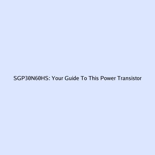 Hey everyone! Today, we’re diving deep into the world of power electronics to talk about a specific component that’s quite a powerhouse: the SGP30N60HS . If you’re into electronics, whether you’re a seasoned pro or just starting out and tinkering with projects, understanding the components you’re using is super crucial. The SGP30N60HS is a type of IGBT (Insulated Gate Bipolar Transistor), and these guys are the workhorses in many high-power applications. We’ll break down what this transistor is all about, its key features, and why it’s a go-to choice for certain designs. So, buckle up, grab your coffee, and let’s get into the nitty-gritty of the SGP30N60HS!
