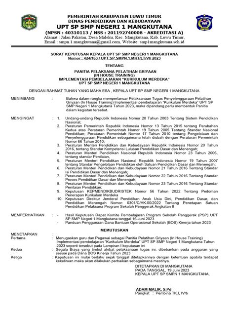 Halo teman-teman pendidik! Gimana kabarnya nih di tengah gelombang perubahan Kurikulum Merdeka yang lagi hits banget? Pasti banyak yang lagi sibuk nyiapin segala sesuatunya ya, termasuk di SMK tercinta kita. Nah, salah satu langkah penting banget buat suksesin implementasi Kurikulum Merdeka ini adalah dengan Surat Keputusan (SK) Panitia Pelaksana In House Training (IHT) . Kenapa ini penting banget? Karena tanpa panitia yang solid dan terstruktur, acara IHT yang tujuannya buat menyamakan persepsi dan meningkatkan pemahaman guru tentang Kurikulum Merdeka bakal susah maksimal, guys!