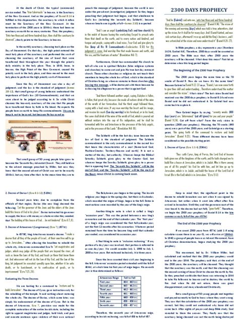 So, there you have it, guys! We’ve explored the origins of the 2300-day prophecy in Daniel’s vision, identified the most widely accepted starting point – the decree in Ezra 7 in 457 BC – and followed the chronological calculation that leads us to 1844 AD . We’ve also touched upon the profound prophetic significance associated with this period, particularly the concept of the investigative judgment and the cleansing of the heavenly sanctuary . The question, ‘ when did the 2300 days prophecy start ’, finds its most common answer in that pivotal decree from King Artaxerxes I. From that historical anchor, the applying of the day-for-a-year principle unfolds a prophetic timeline of immense duration and consequence. The end point, 1844, serves as a cornerstone for a specific theological understanding of Christ’s ongoing ministry in the heavenly realms and the unfolding of God’s end-time plan. While interpretations may vary, and the complexity of biblical prophecy can be challenging, the study of the 2300-day prophecy offers a compelling narrative of divine foresight and a structured timetable for significant spiritual events. It reminds us that despite the passage of time and the unfolding of history, God’s prophetic word remains steadfast. The enduring relevance of this prophecy lies not just in its historical accuracy or its complex calculations, but in the spiritual message it conveys: a message of hope, accountability, and the ultimate triumph of God’s kingdom. It encourages us to look beyond the immediate and to understand our place within a grander, divinely orchestrated plan. Keep studying, keep questioning, and keep seeking the truth found within the pages of scripture. The prophetic journey is one of discovery, and the 2300-day prophecy is a vital chapter in that ongoing exploration. Stay blessed!