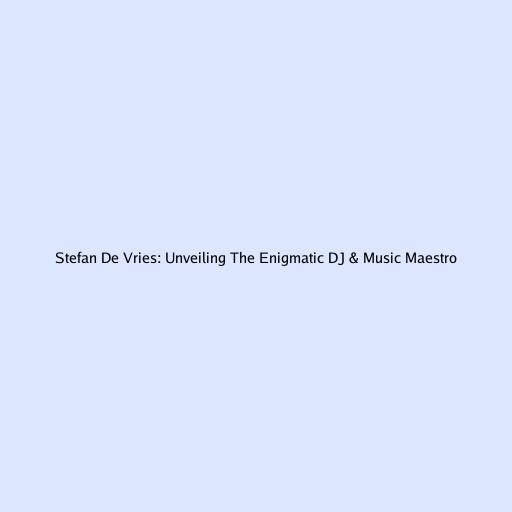 Stefan De Vries: Unveiling The Enigmatic DJ & Music Maestro
