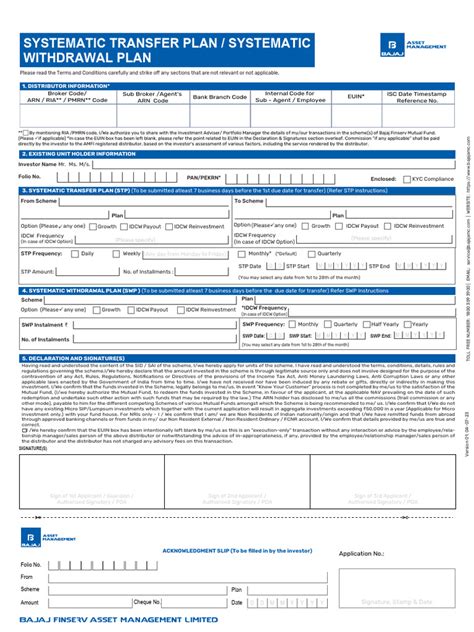 3. Fill Out the Application Form: Obtain the STP or SWP application form from the fund house’s website or branch.