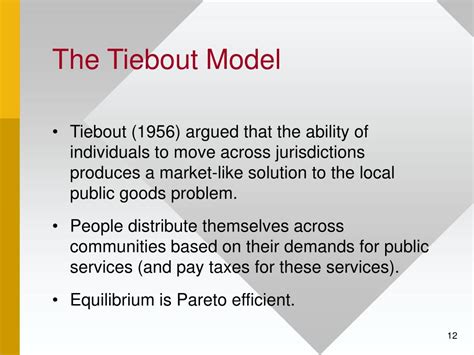 Another critique concerns equity and fairness . The Tiebout Model could potentially lead to communities that are segregated by income and race. Wealthier communities might offer better services, attracting higher-income residents and potentially excluding lower-income families. This could create disparities in access to education, healthcare, and other essential services. Some communities may also attempt to exclude certain groups of people through zoning laws or other means, which is not fair.