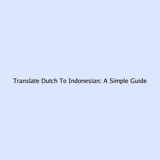 Translate Dutch To Indonesian: A Simple Guide