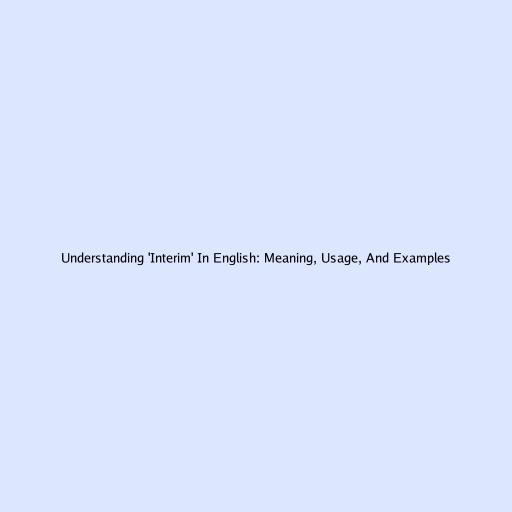 Understanding 'Interim' In English: Meaning, Usage, And Examples