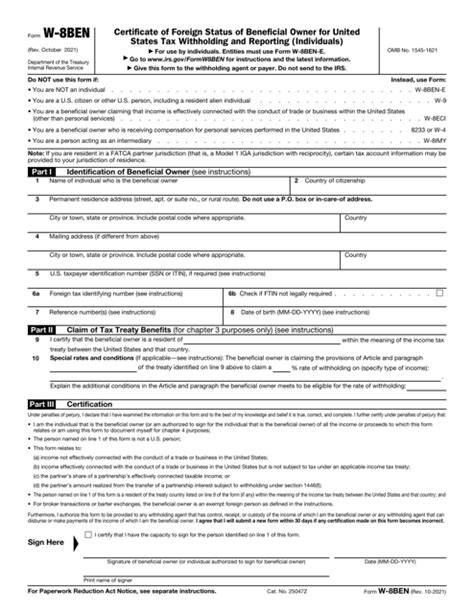 Hey guys! Today, we’re diving deep into a topic that might sound a bit dry at first, but trust me, it’s super important if you’re a foreign individual earning income in the U.S. We’re talking about the IRS Form W8-BEN . So, what exactly is this form, and why should you care? Basically, if you’re not a U.S. person and you receive certain types of income from U.S. sources, like dividends, interest, or royalties, you’ll likely need to fill this out. It’s your way of telling the U.S. payer (like a company or financial institution) that you’re not a U.S. resident and therefore, potentially eligible for a reduced rate of withholding tax or even an exemption, thanks to tax treaties between your country and the U.S. This form is crucial for avoiding over-withholding of taxes, which means you get to keep more of your hard-earned money. Think of it as your golden ticket to potentially paying less tax on your U.S. investments or earnings. It’s designed to streamline the process and ensure the correct tax is applied. The IRS uses this information to track foreign income and ensure compliance with tax laws. So, if you’ve ever wondered why a U.S. company might be withholding taxes from your payments, or how you can potentially lower that withholding, Form W8-BEN is likely the answer. It’s a common form used by individuals worldwide who have financial dealings with the United States. We’ll break down what each section means and how to fill it out correctly, so stick around!
