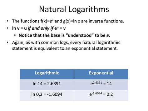 Before diving into the natural logarithm, let’s quickly recap what a logarithm is . Simply put, a logarithm answers the question: “To what power must we raise a base number to get a certain value?” For example, the logarithm base 10 of 100 (written as log₁₀(100)) is 2, because 10² = 100. So, a logarithm is essentially the inverse operation of exponentiation. Think of it like this: multiplication has division as its inverse; exponentiation has logarithms as its inverse. When you see “log” written without a base (like log(x)), it’s usually assumed to be base 10, but it’s always a good idea to check the context to be sure. Understanding this fundamental relationship between exponents and logarithms is crucial for grasping the concept of the natural logarithm . The base of a logarithm can be any positive number except 1. Common bases include 10 (the common logarithm, used in many everyday applications) and, as we’ll see, the special number e for the natural logarithm. Different bases offer different perspectives and are useful in different contexts. While base 10 is convenient for dealing with powers of ten, base 2 is fundamental in computer science, and base e has unique properties that make it indispensable in calculus and other advanced mathematical areas. So, remember, a logarithm unravels the exponent, telling you what power you need to raise the base to in order to achieve a specific number. This understanding forms the bedrock for exploring the natural logarithm and its unique role in the world of mathematics and beyond.