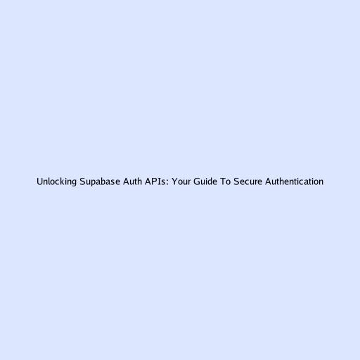 Unlocking Supabase Auth APIs: Your Guide to Secure Authentication