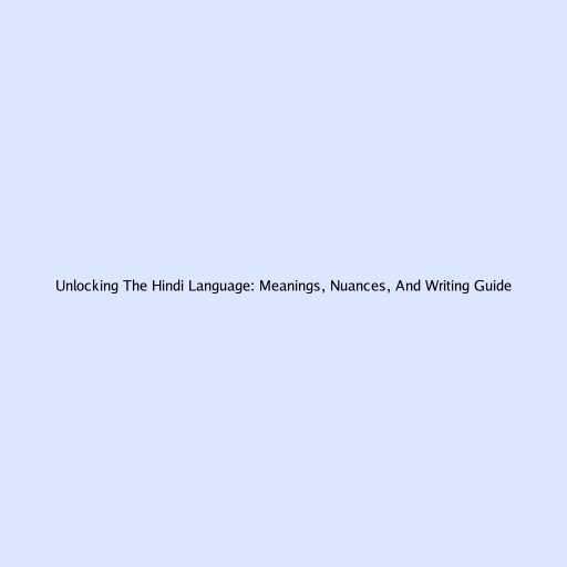 Unlocking The Hindi Language: Meanings, Nuances, And Writing Guide